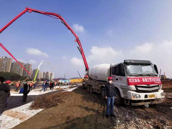而在這之前的28日上午10時(shí),徐承忠信守承諾,護(hù)送裝有2000立方米混凝土的泵車(chē)到達(dá)武漢火神山醫(yī)院施工現(xiàn)場(chǎng),用于地基澆筑。